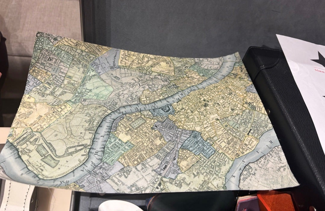 カスタムプラスランクで選べる中にこんな面白い生地(ロンドンの地図柄)があってちょっと悩みましたが、ちょっと開けた時のインパクトがすごいかなと思い笑、ライニングはシンプルなリネン生地にしました。(これも開けた時の上側を無地、下側を柄と変えることもできますがビスポークになってしまいます。どうせビスポークにするなら生地の選択肢も増えるし・・・となり、ビスポークにするとすごく悩みそうですね。)