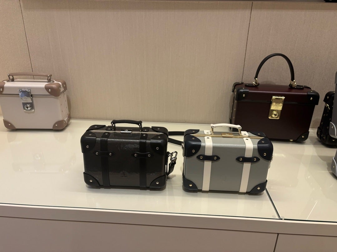当日は阪急梅田店の特別室を一人で丸々使わせていただいての打ち合わせ😳部屋に入ると、たくさんの商品が展示されていました!グローブトロッター好きにはたまらない空間です。