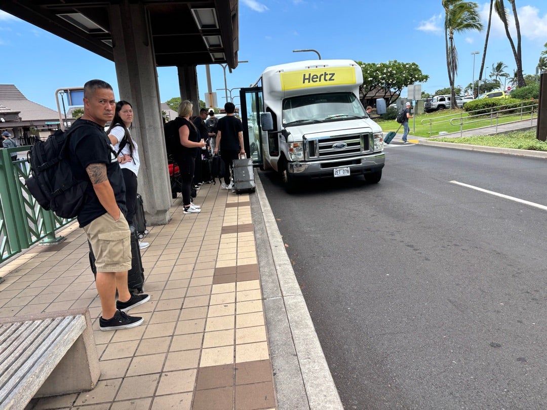 次は空港内のハーツレンタカーに向かいます。歩いてもいけそうな距離ですがこのシャトルバスで行きます。