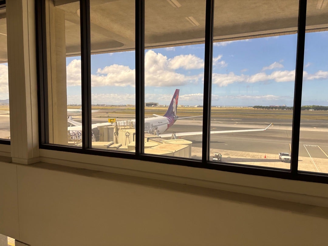 後はTerminal1 (ハワイアン航空専用ターミナル)に移動して、そこで手荷物の保安検査を受けたら、搭乗口のあるエリアに出ます。