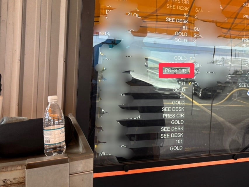「PRES CIR」となってて、何それ??と思ったら、「president circle」というエリアを発見。ここにある車から自由に選んで乗っていっていいということです。