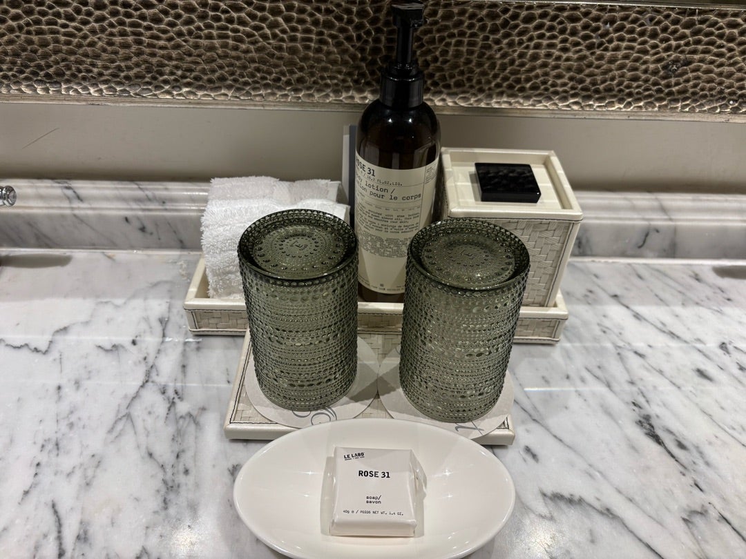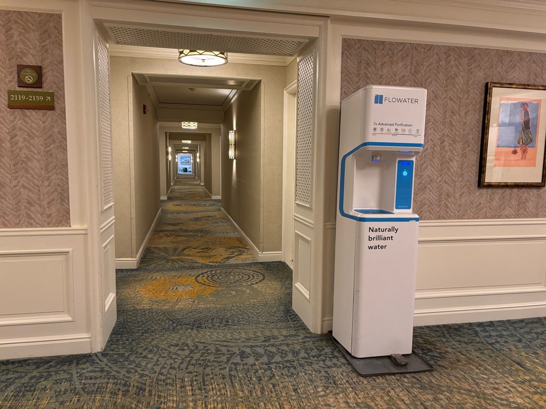 アメニティのボトル。ホテルのあちこちに給水機がありました。