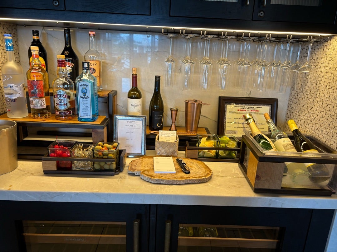 リビングにある大きなキャビネットを開けるとミニバーでした