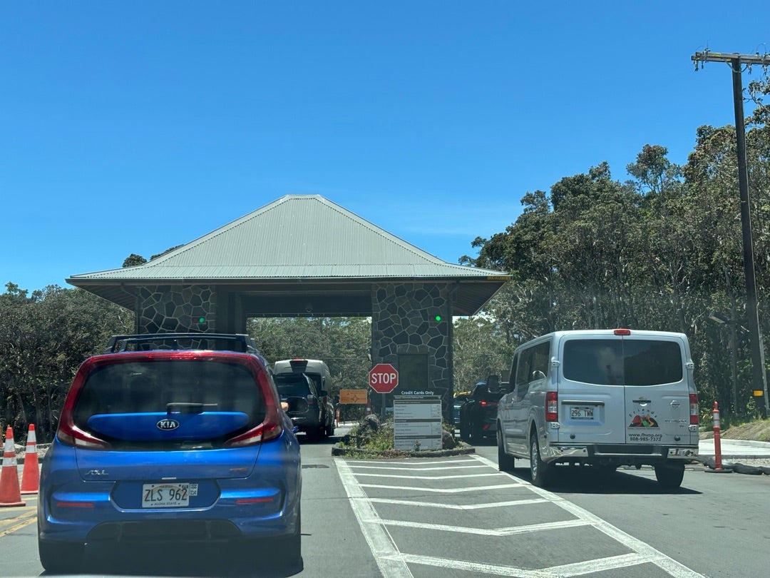 12:20(出発後2時間)、キラウエア火山国立公園の入り口です!料金所で車1台料金として30ドルを支払いました
