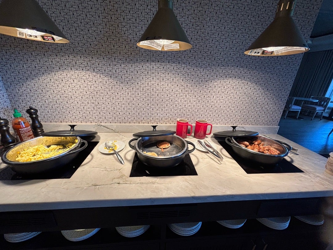 写真がないのですが、コールドミールの台もあり、そこにはヨーグルト、チーズ、サーモン、生野菜などがありました。