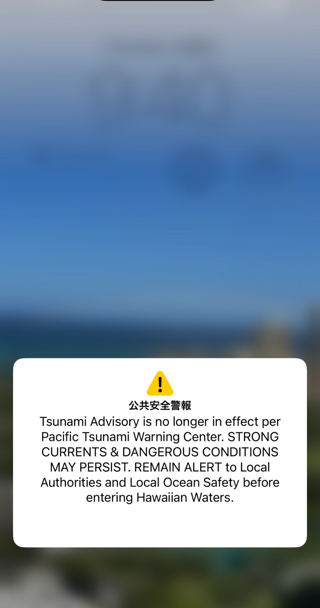 海はまだ入れなさそうですが、これでようやく津波アラートは終わりました。