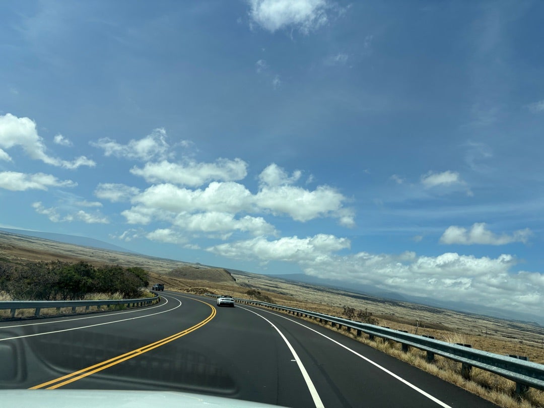 ホテルから東に、ハワイ島の真ん中をひたすら突っ切る道路、サドルロードを進みます。これが長い![]()