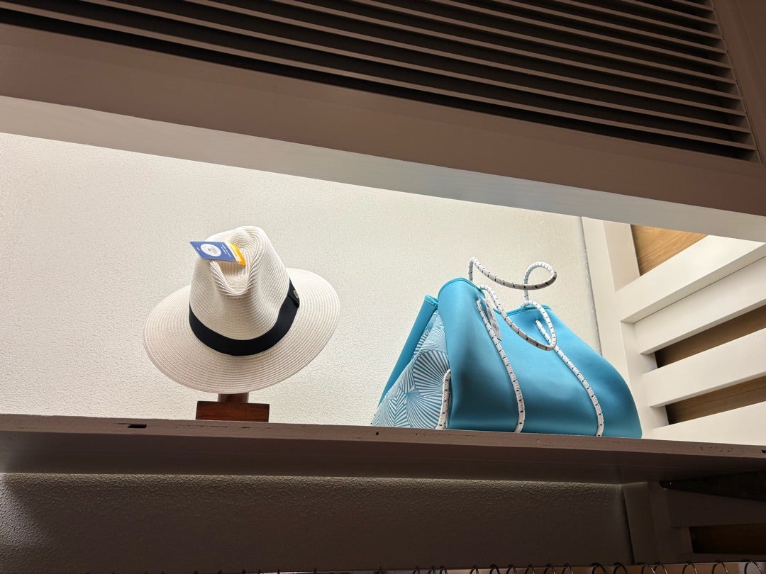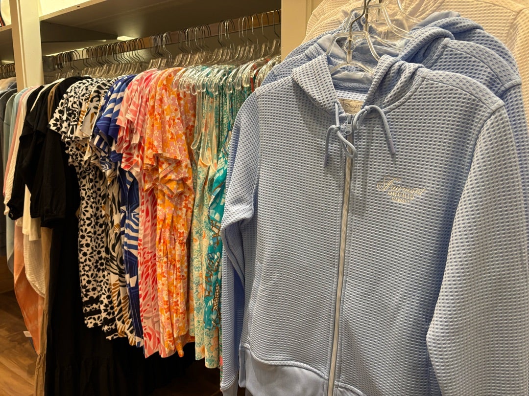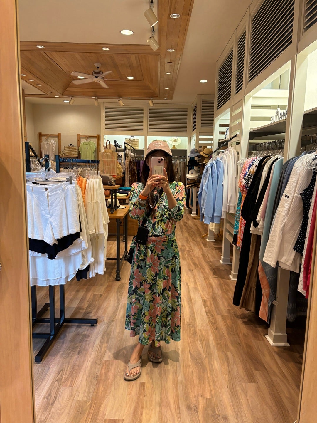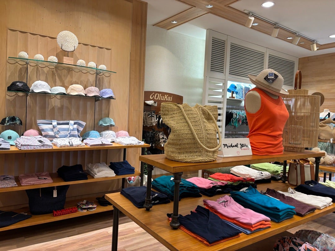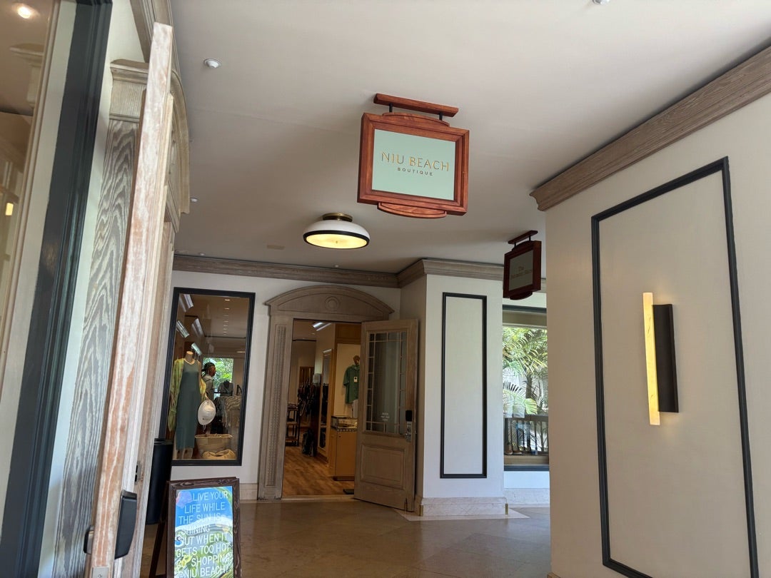 ショップがあるエリアに来ました。手前は水着やリゾートウェアのショップ。奥の方がフェアモントグッズのショップ。