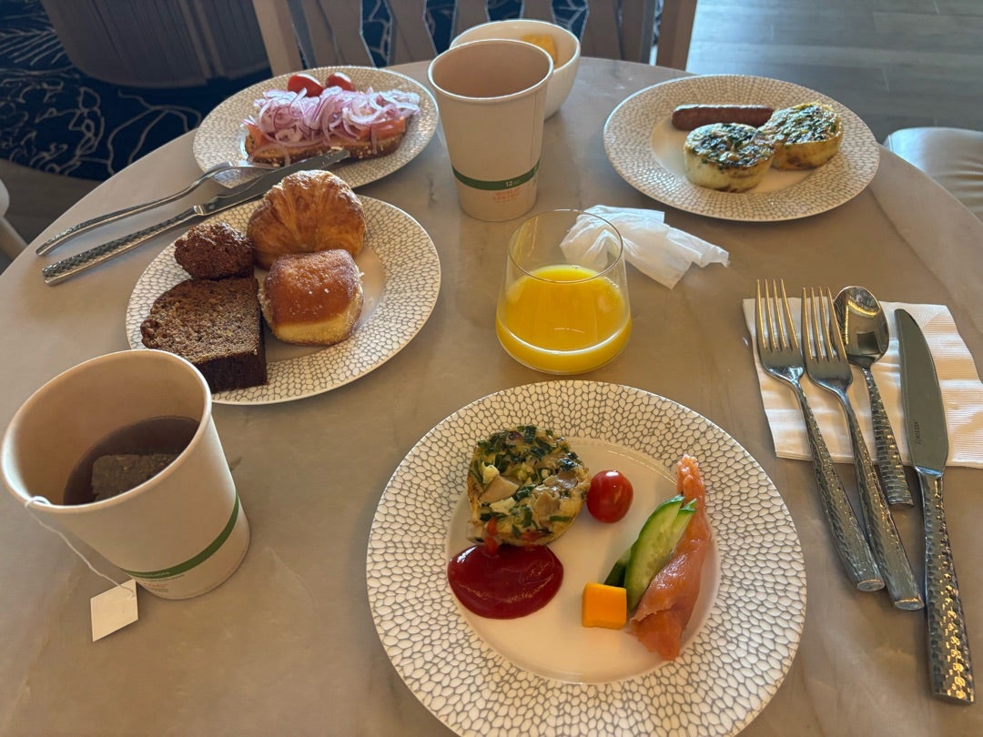 ブッフェ台の写真を撮り忘れたのですが、ホットミール3種が日替わりで、今日の卵料理はホワイトオムレツのようなものでした。