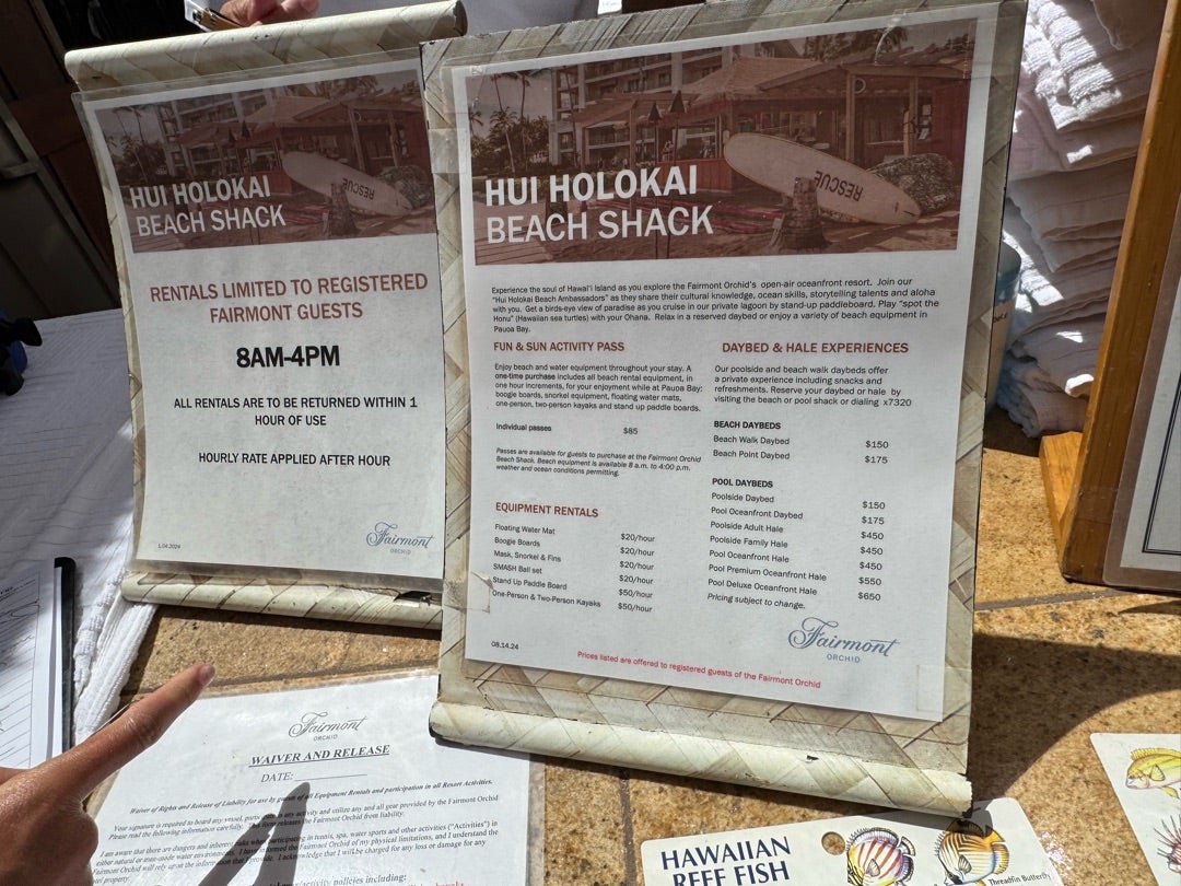 右:ビーチ用具レンタルやデイベッドの価格です。