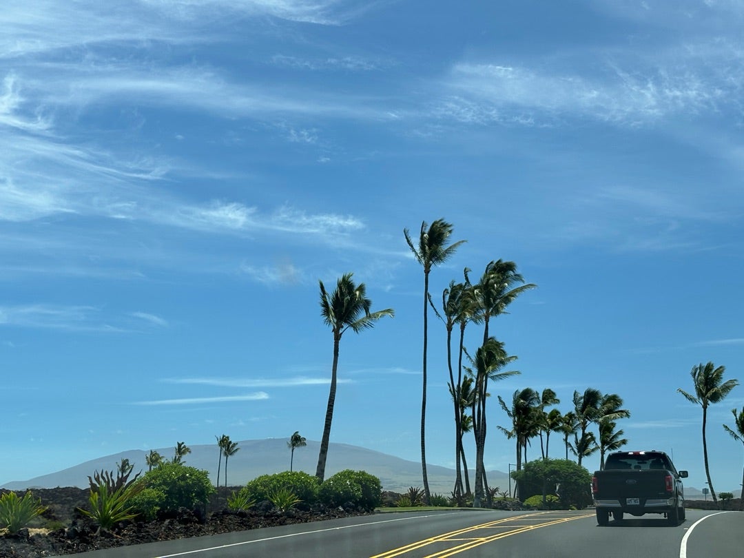 マウナケア山頂が北側から見えています。(サドルロードでは南側から見えてました。)