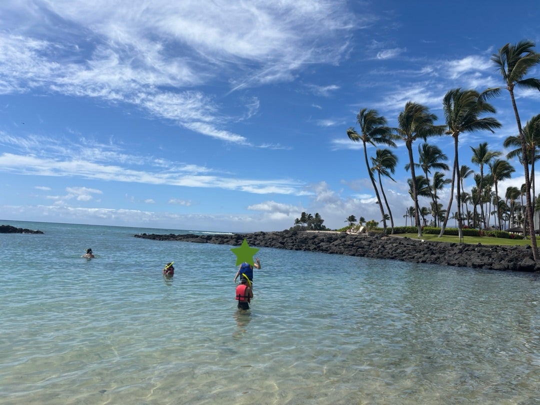 シュノーケルしたり泳いだりできるホテルビーチがこちら。