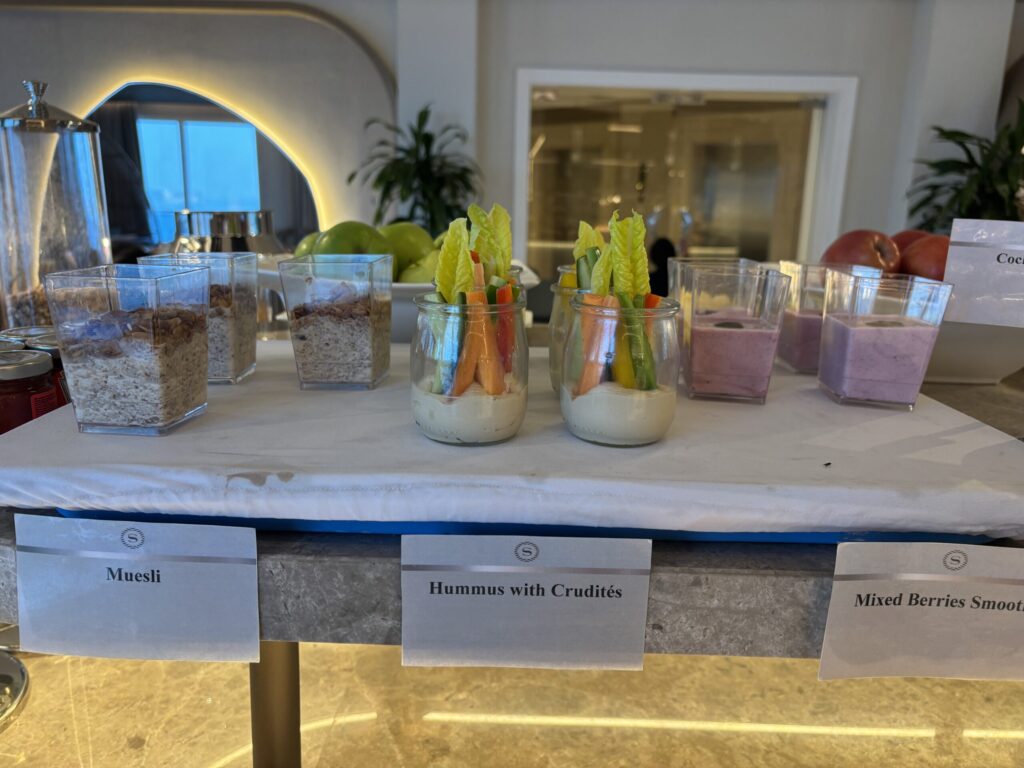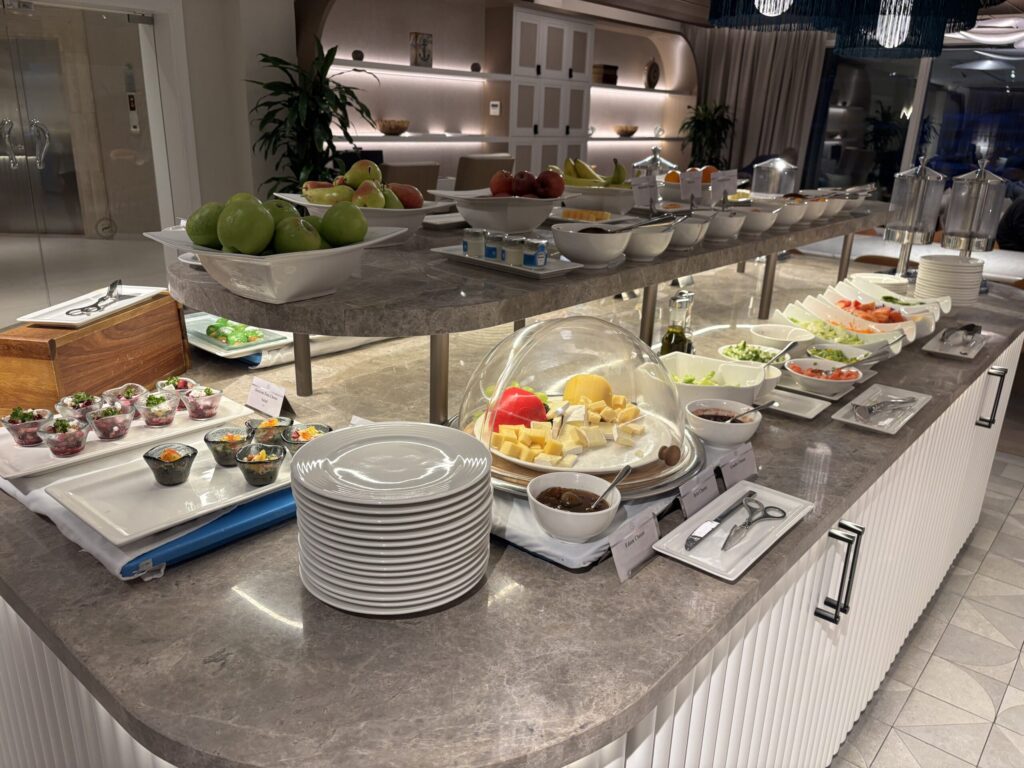 ラウンジはこの時間でも食事が豊富でした!カクテルタイムは終わっていたのでソフトドリンクをいただきました。(ドリンクは全てオーダー制でした。スタッフが多く、常にテーブルを回っていました。)