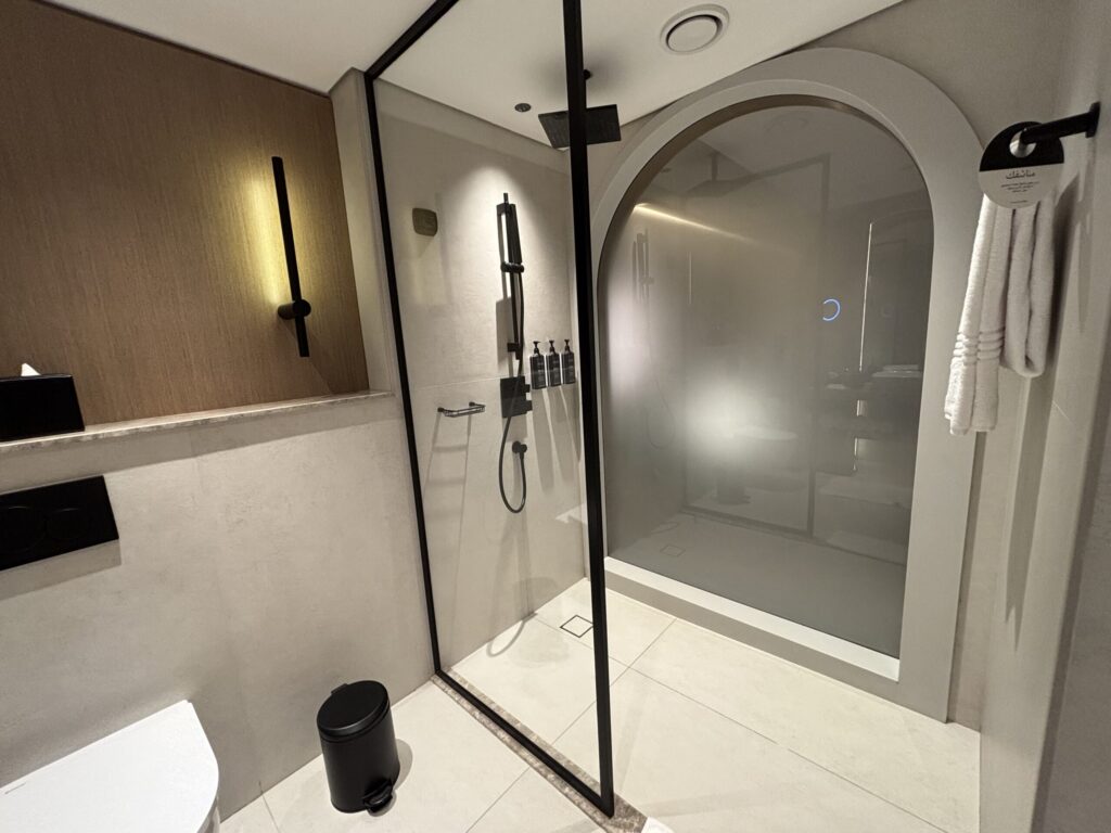 水回りは、シャワールームが広く清潔で、ハンドシャワーで使い勝手が良かったです。トイレは独立ではありませんでした💦アメニティはこれまた意外にも歯ブラシセットやコットン綿棒のセットなどがありました!