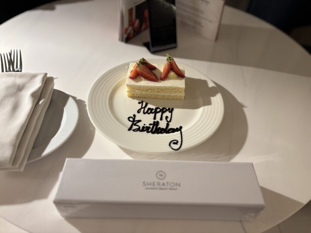 夫の誕生日にホテル側が気づいたのかケーキが置かれていました🍰