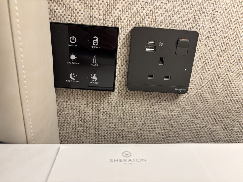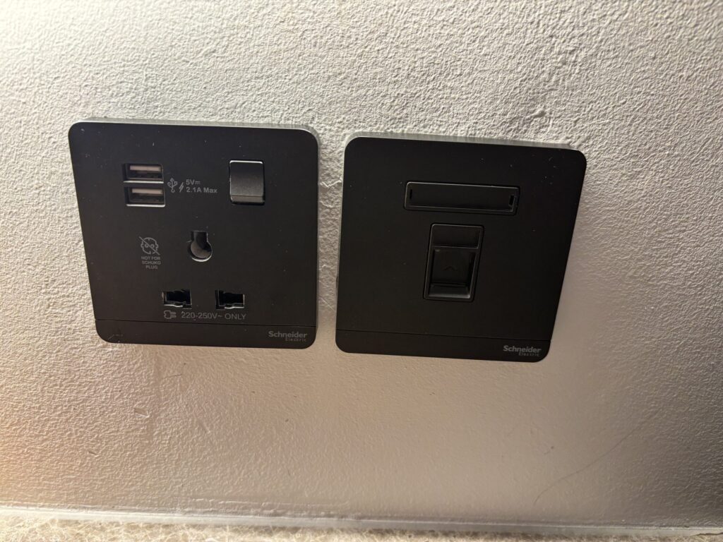 コンセント類はベッドサイドなどに多めにあり使いやすかったです。USBはAもCもありました。最近リノベーションしただけあります✨プラグはドバイのBFタイプなので変換プラグ必須。