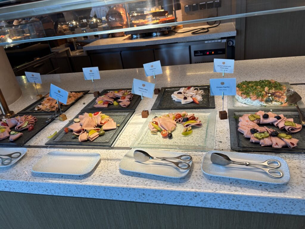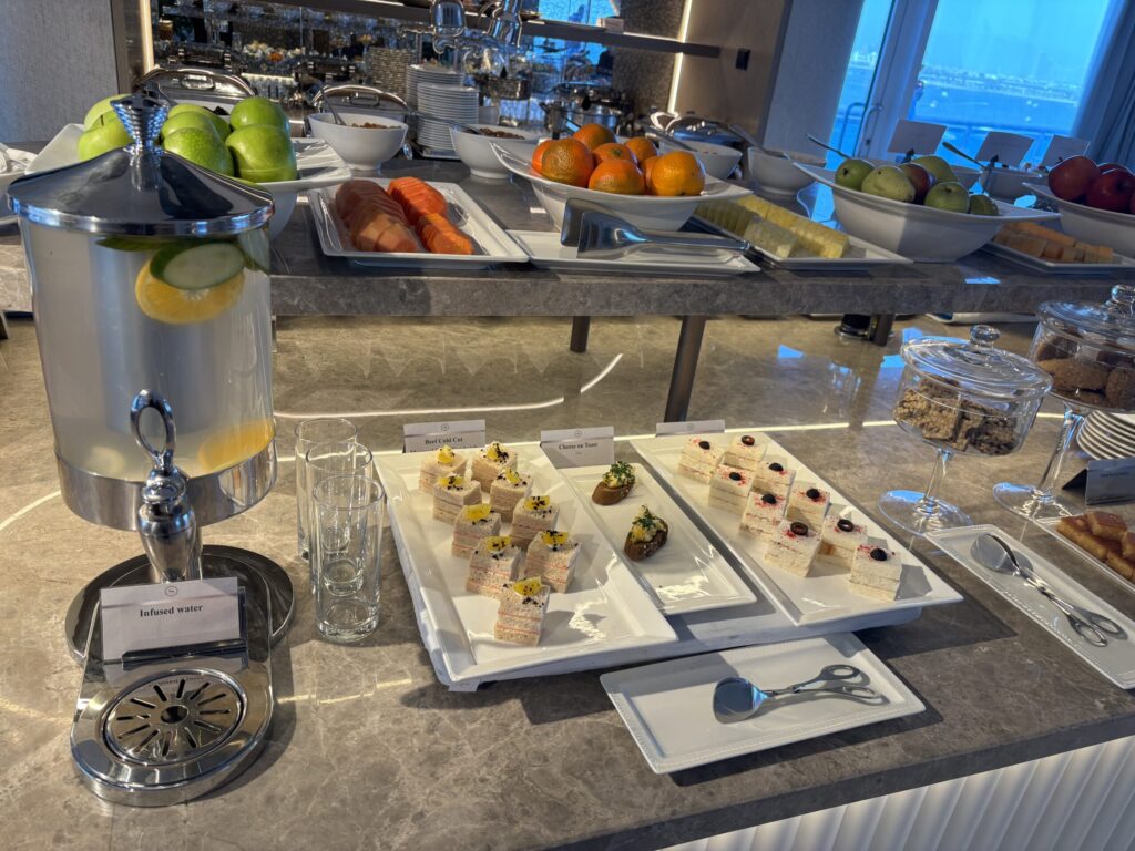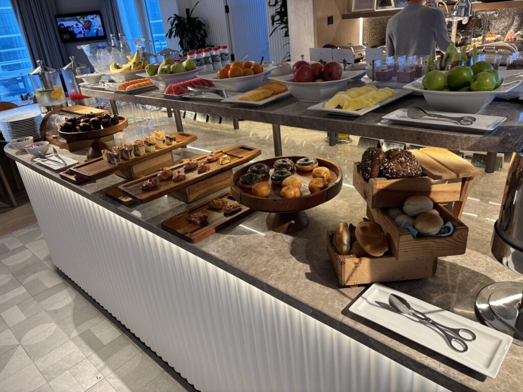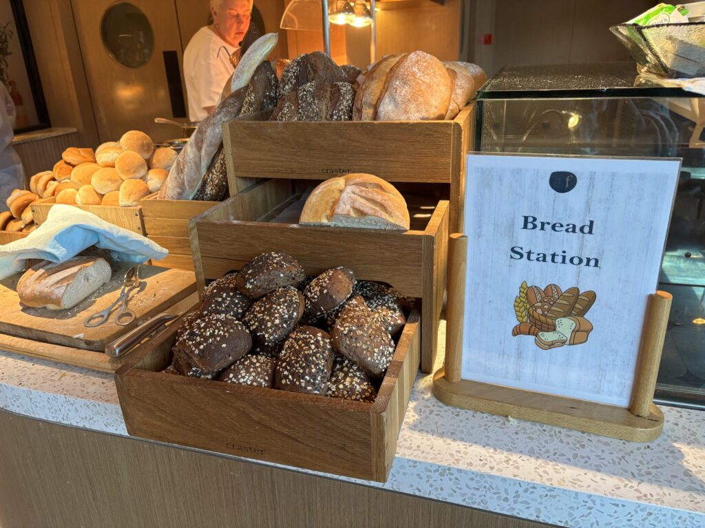ラウンジの食事と基本的に似ていましたが。どのジャンルもさらに種類がある、といった感じでした。特にスイートパンのコーナーが独立しており、かなりの種類で圧巻!