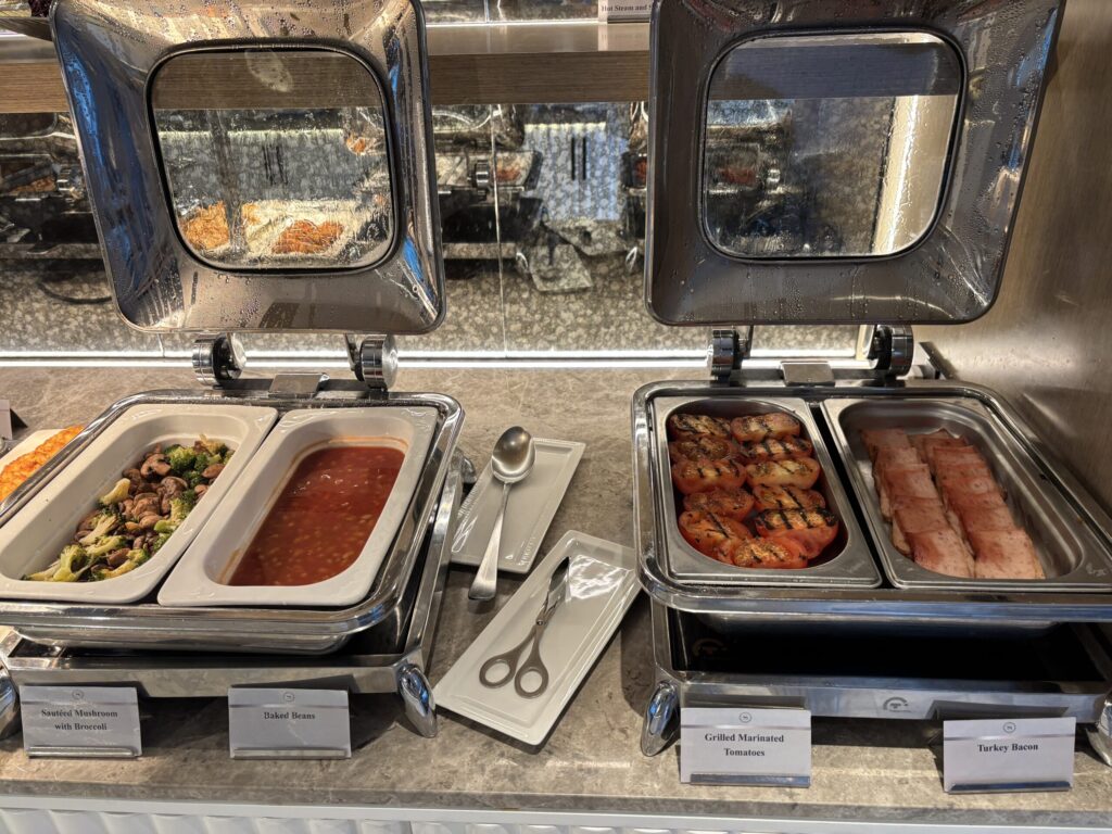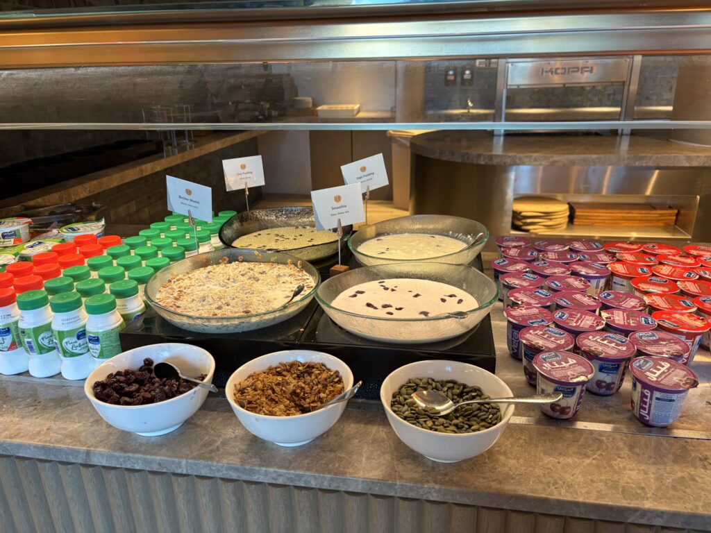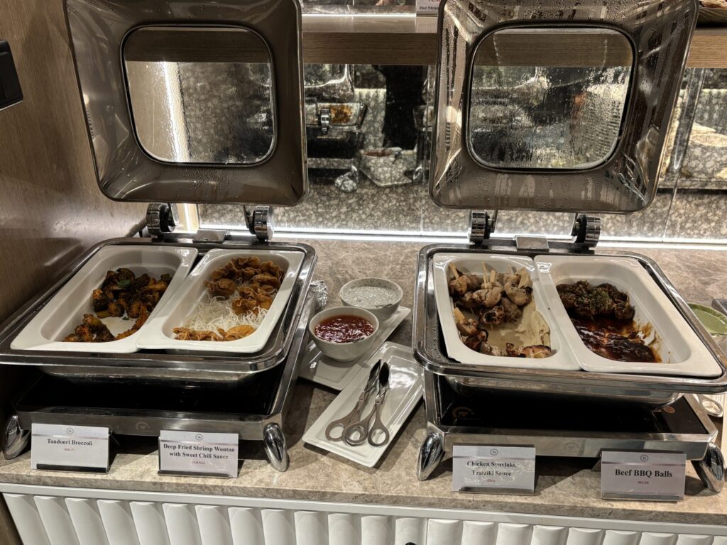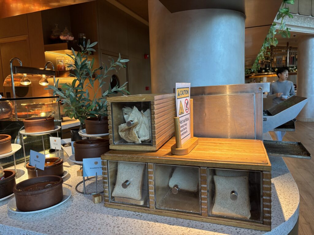 ラウンジの食事と基本的に似ていましたが。どのジャンルもさらに種類がある、といった感じでした。特にスイートパンのコーナーが独立しており、かなりの種類で圧巻!