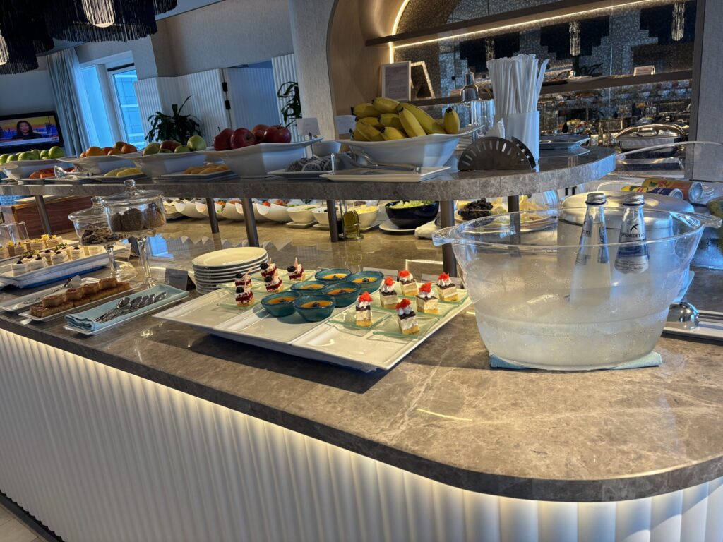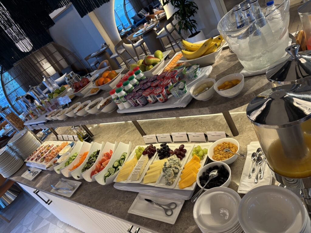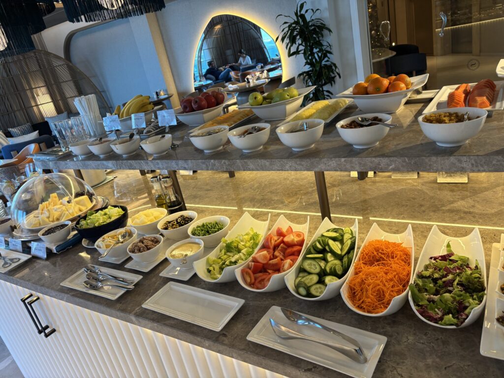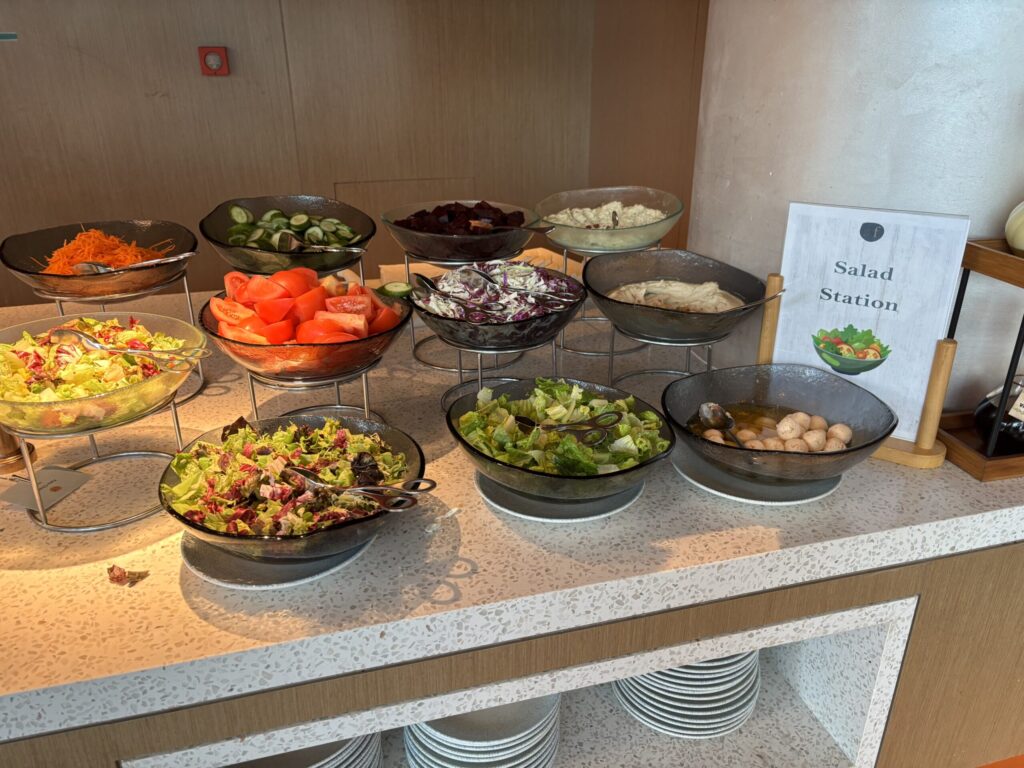 その後1階のレストランへSeafieldへ。こちらは広く、インテリアも豪華✨中東料理や卵料理のオープンキッチンコーナーもあります。お料理もとても充実していて、全部撮ったらかなりの枚数になりましたが全部載せておきます。