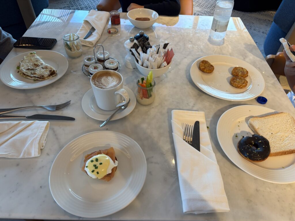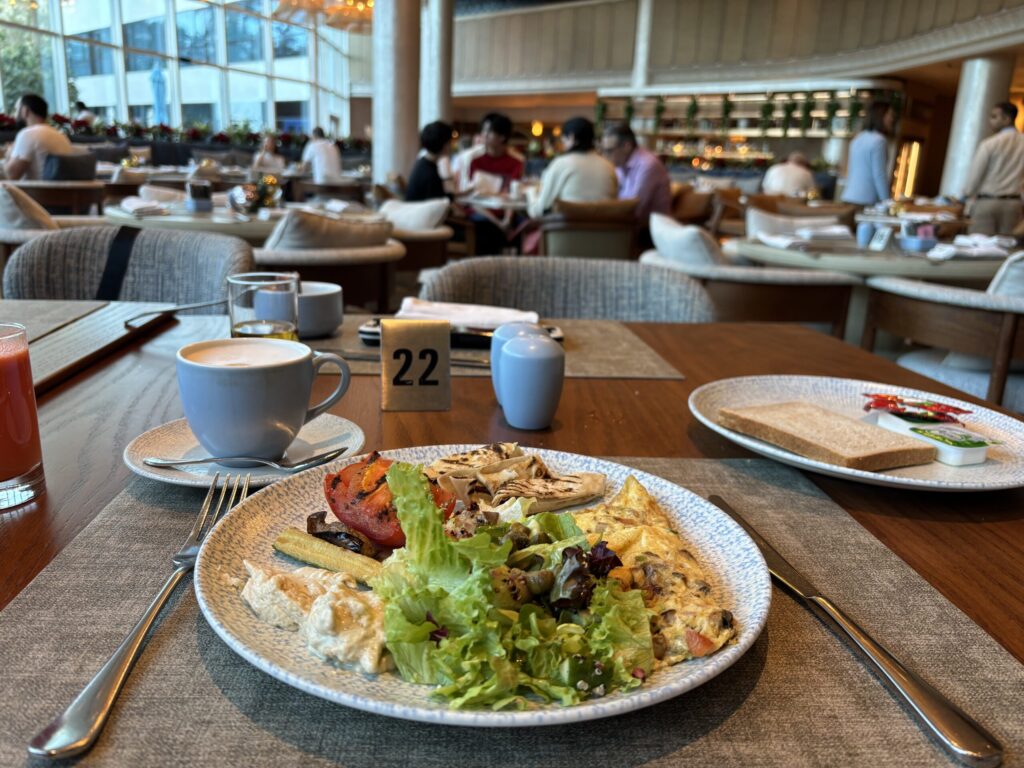 まず朝食へ。マリオットプラチナエリート特典で、朝食はクラブラウンジと1階レストランの両方入れます。(詳細は前回ブログ参照)