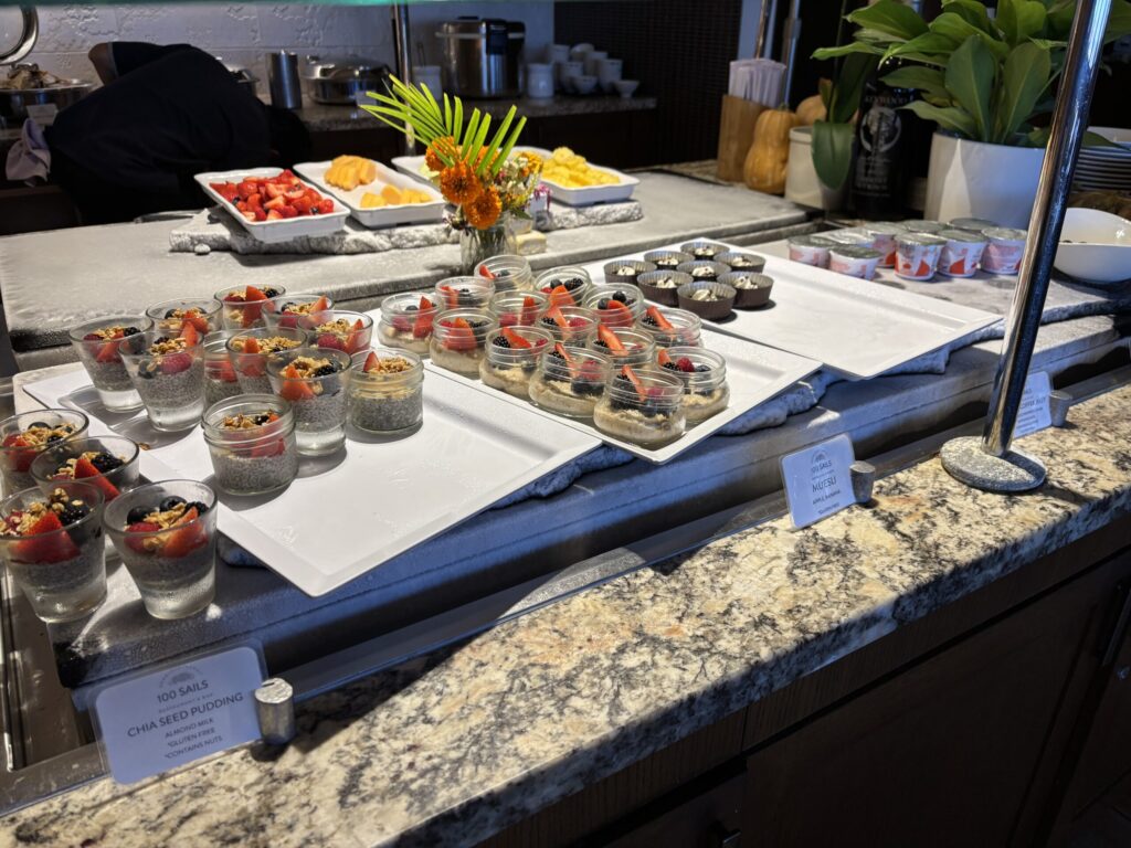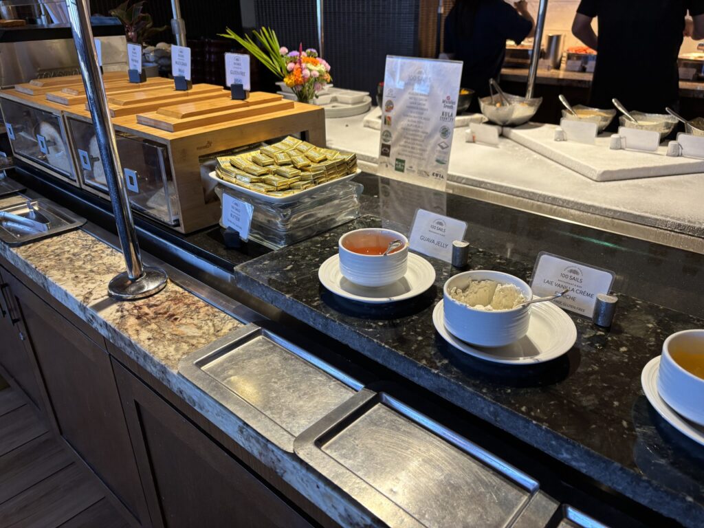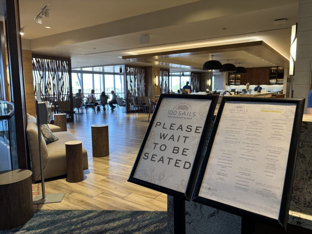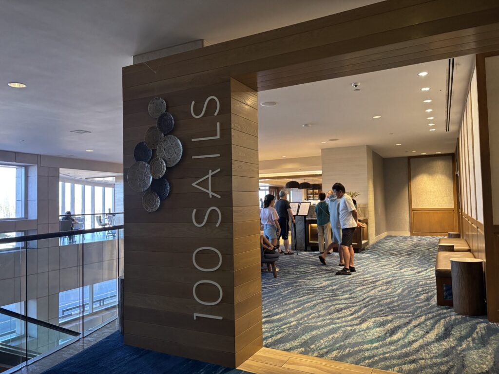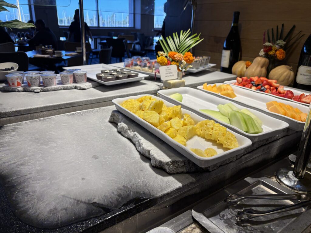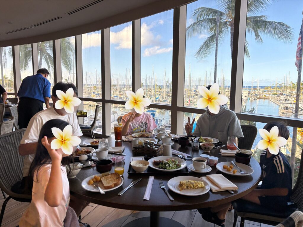 子供達を起こして朝食へ。ホテル内レストラン100 SAILSに向かいます。ここはヨットハーバーを見渡せる有名なレストランで、以前にも来たことがあります✨プラチナメンバー特典でここの朝食が6名分無料は結構すごいです👍