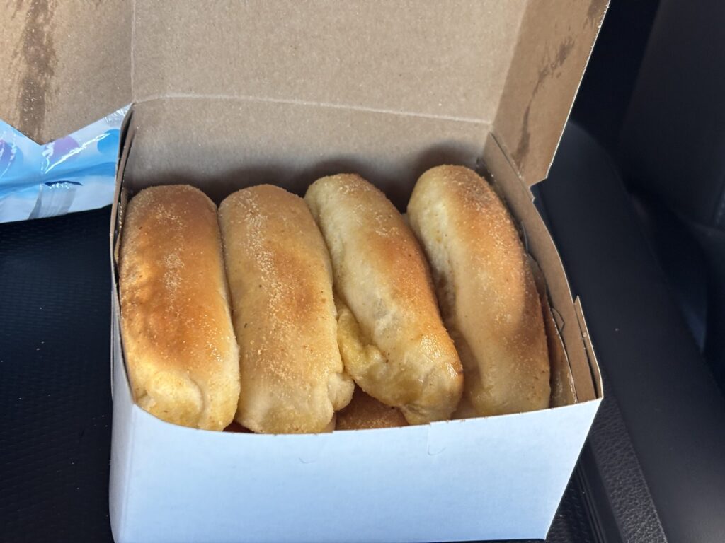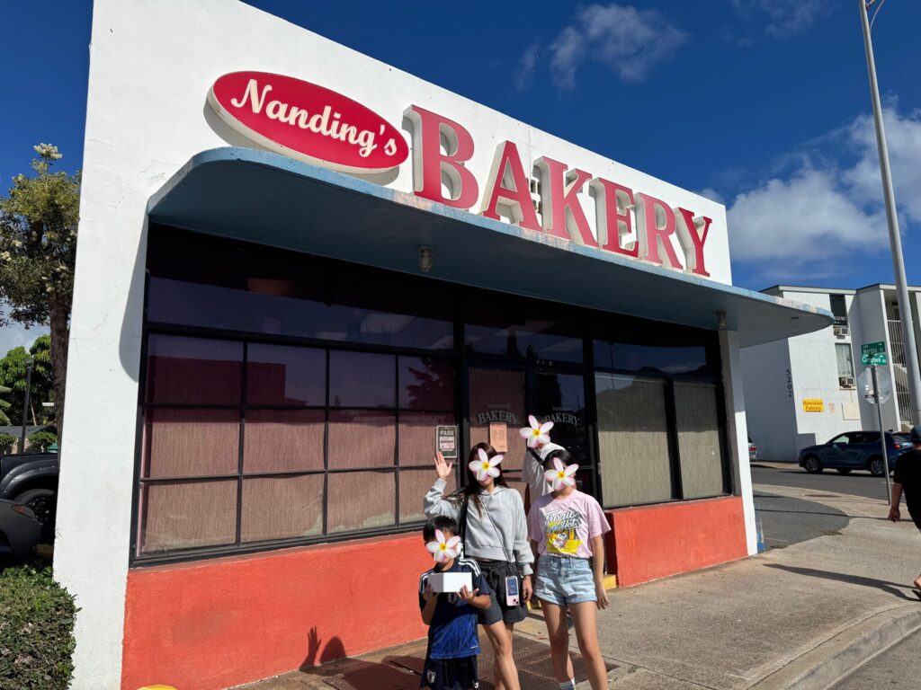 次にそこから車で3分のナンディングスベーカリー。ここはハワイに来たら絶対きます。地元の人でいつも行列。スパニッシュロールというパンが素朴ながらめちゃくちゃ美味しいのです。(ショーケースの中にはなくて、口頭で個数を伝えます。ほとんどの人がこれをダース買いで購入してます。)1人数個ぺろっと食べられるので1ダース購入!