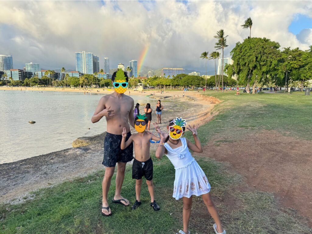 その後一旦ホテルに帰って、私と長女はアラモアナに行きました。下の子供達やパパはプールで遊び、その後アラモアナビーチにも行きました。