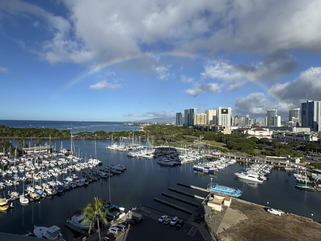 朝8時前に起きると、窓の外に大きな虹🌈✨こんな180°完全な虹はハワイでもなかなか見たことないです✨