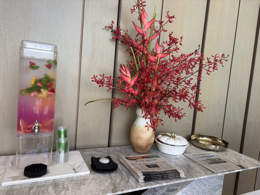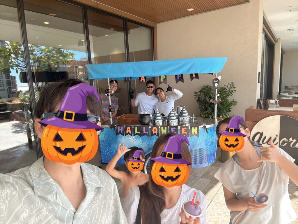最初にお決まりのレイをいただきます🌸ハロウィンのお菓子も置かれてて、ハロウィン気分が上がります⤴️