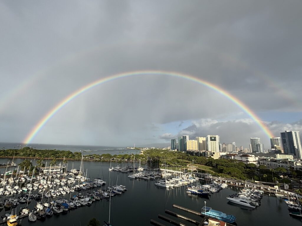 3日目の朝です。朝起きた瞬間、ブラインド越しでもわかるほど濃い虹が!!🌈しかもダブルレインボー✨