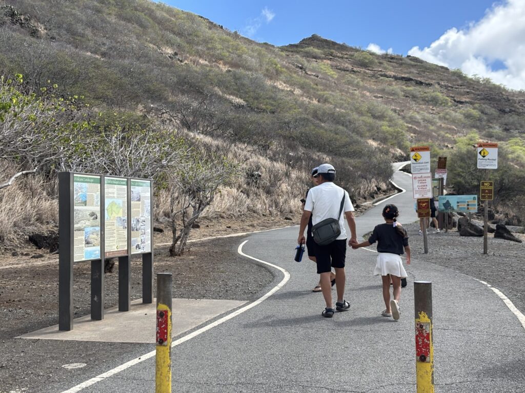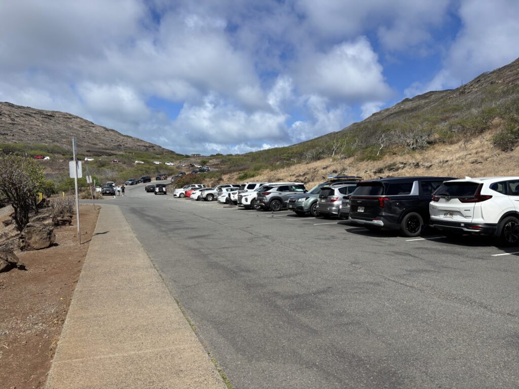 そしてそこから車で10分ほどでマカプウの駐車場に到着。ここも満車な時がありますが、今日は結構空いてました。(今回何かと駐車場が空いてるのはオフシーズンのためでしょう✨)ここも無料です。