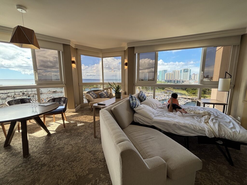 しかも角部屋(一番アラモアナ側)で、景色も最高でした。19階と高層すぎない階で、海や街の雰囲気も感じられます🌴