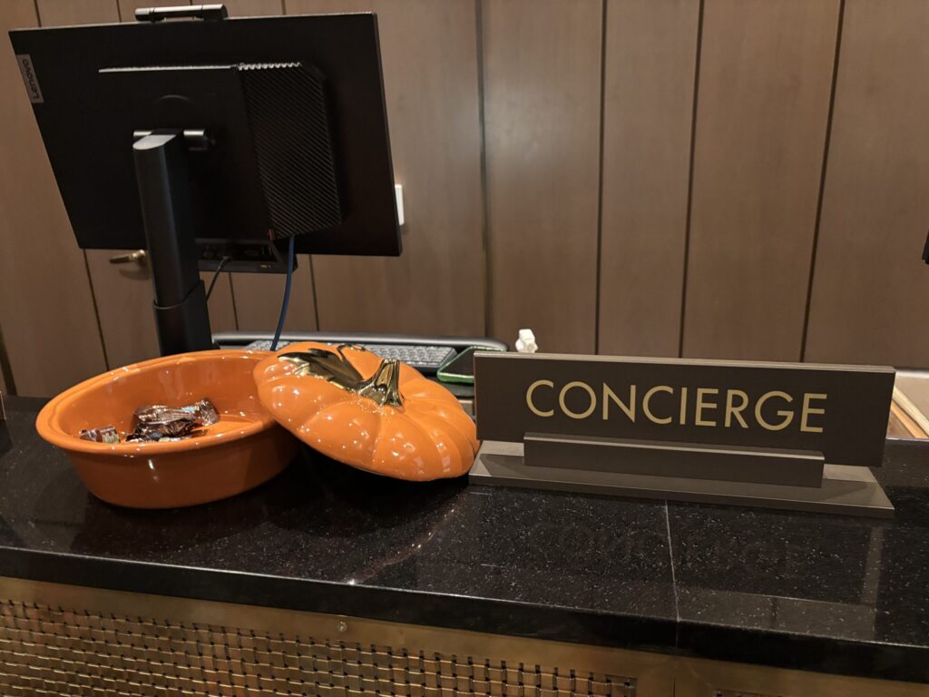 エレベーターでロビー階に出るとここにもハロウィンのお菓子🎃(白かぼちゃの容器)