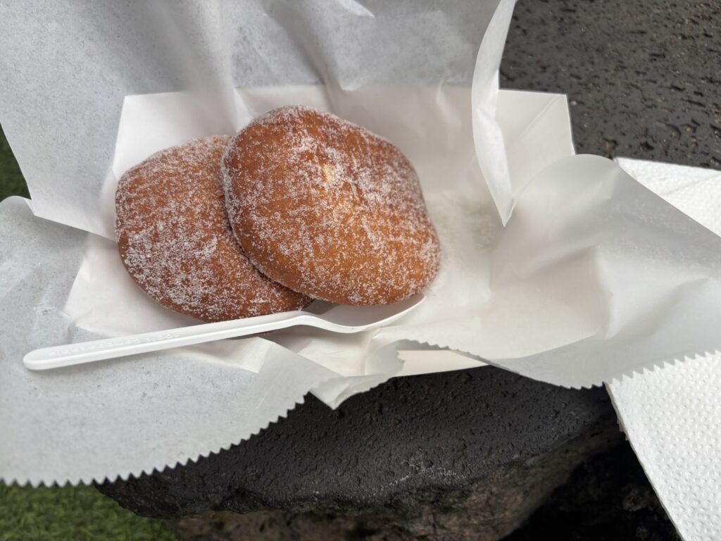 さらにフードコートにあるペニーズマラサダでマラサダも購入して、ここのガーデンで食べます。ペニーズのマラサダは、レナーズより軽い食感でふんわりしていて、我が家は1番お気に入りです。