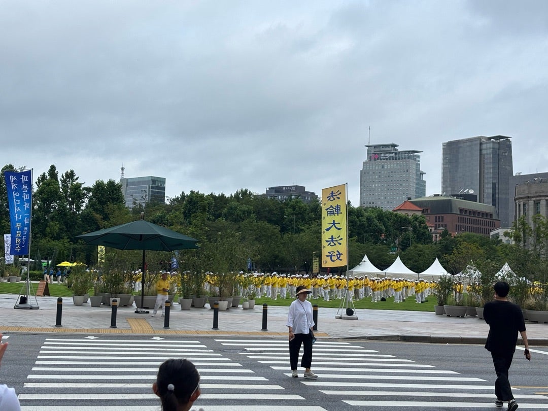 ホテルの前の公園、何やらデモをやっているキョロキョロ(韓国ではよくあるよう)