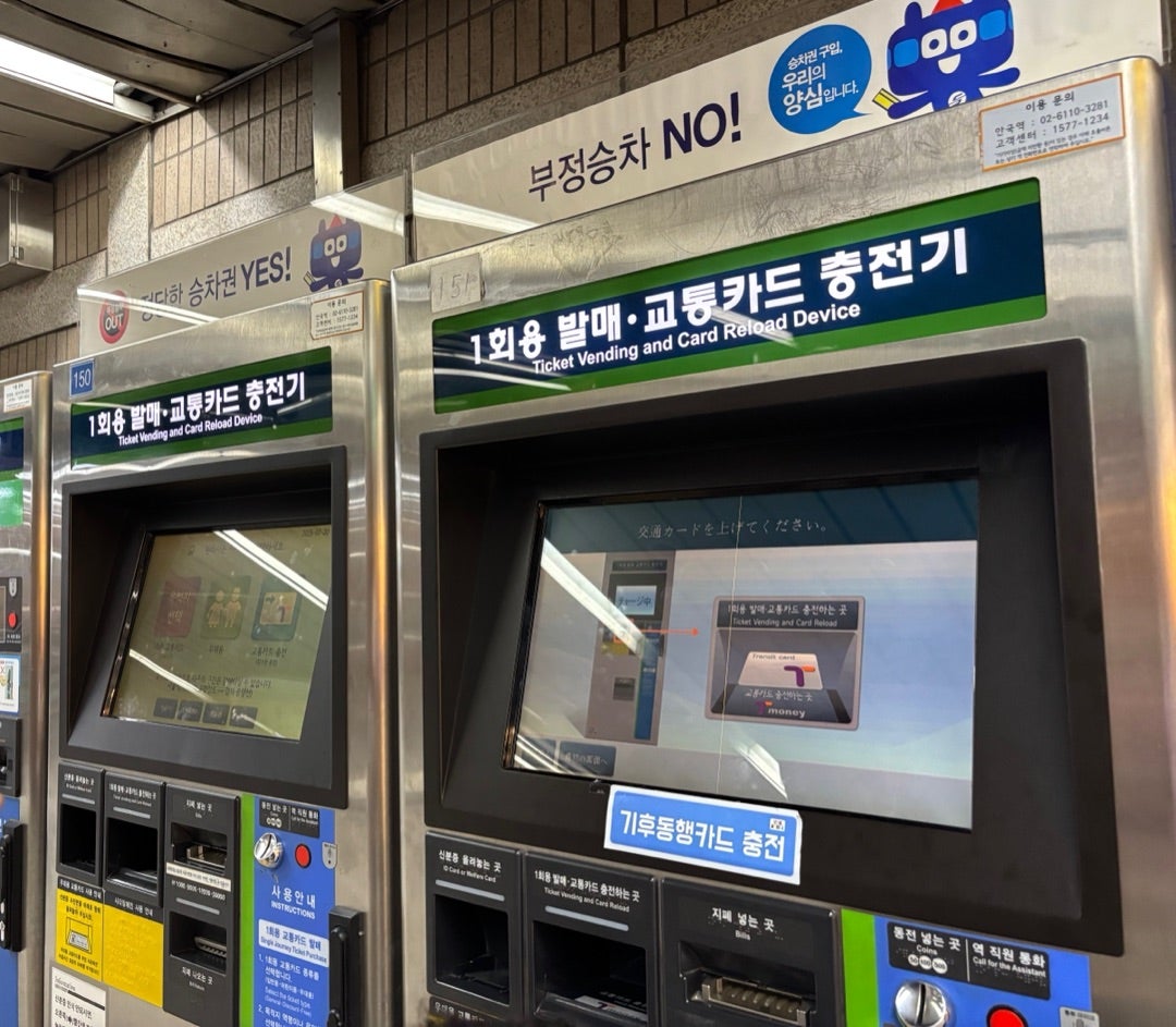 先ほど買った気候同行カードに5000ウォンをチャージ。これで1日乗り放題です!何日分にするかはチャージする時に選べます。券売機は日本語も選択できるので言葉には困りませんグッド!
