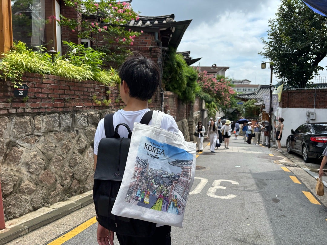 たまたま入ったクッキー屋さんGrains cookiesで、インスタフォローするだけでこんなバッグをいただけました。ここならではの絵柄でいい感じですキラキラ
