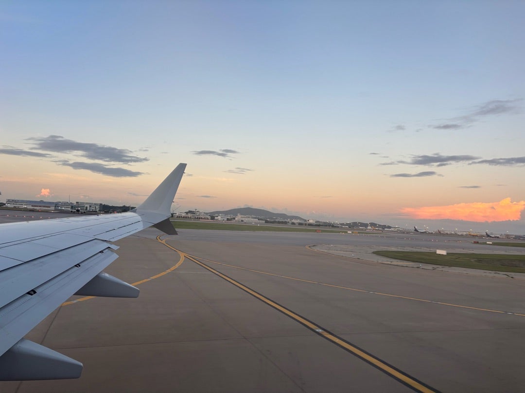 空港の混雑のため、離陸が19:00→19:30になり、搭乗してから1時間ぐらい待たされました![]()