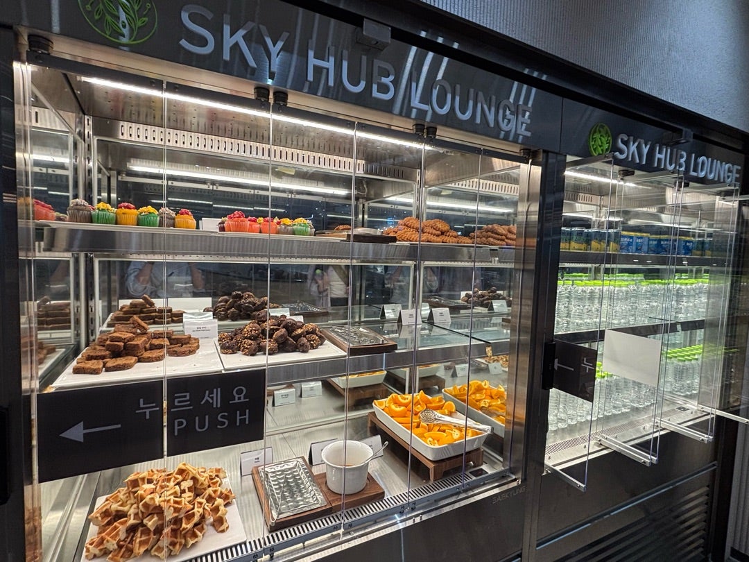 仁川空港第2ターミナルにはプライオリティパスが使えるラウンジが3つあります。そのうち一つSKY HUB LOUNGEが、私たちの搭乗ゲート247のすぐ前でしたので向かいました。