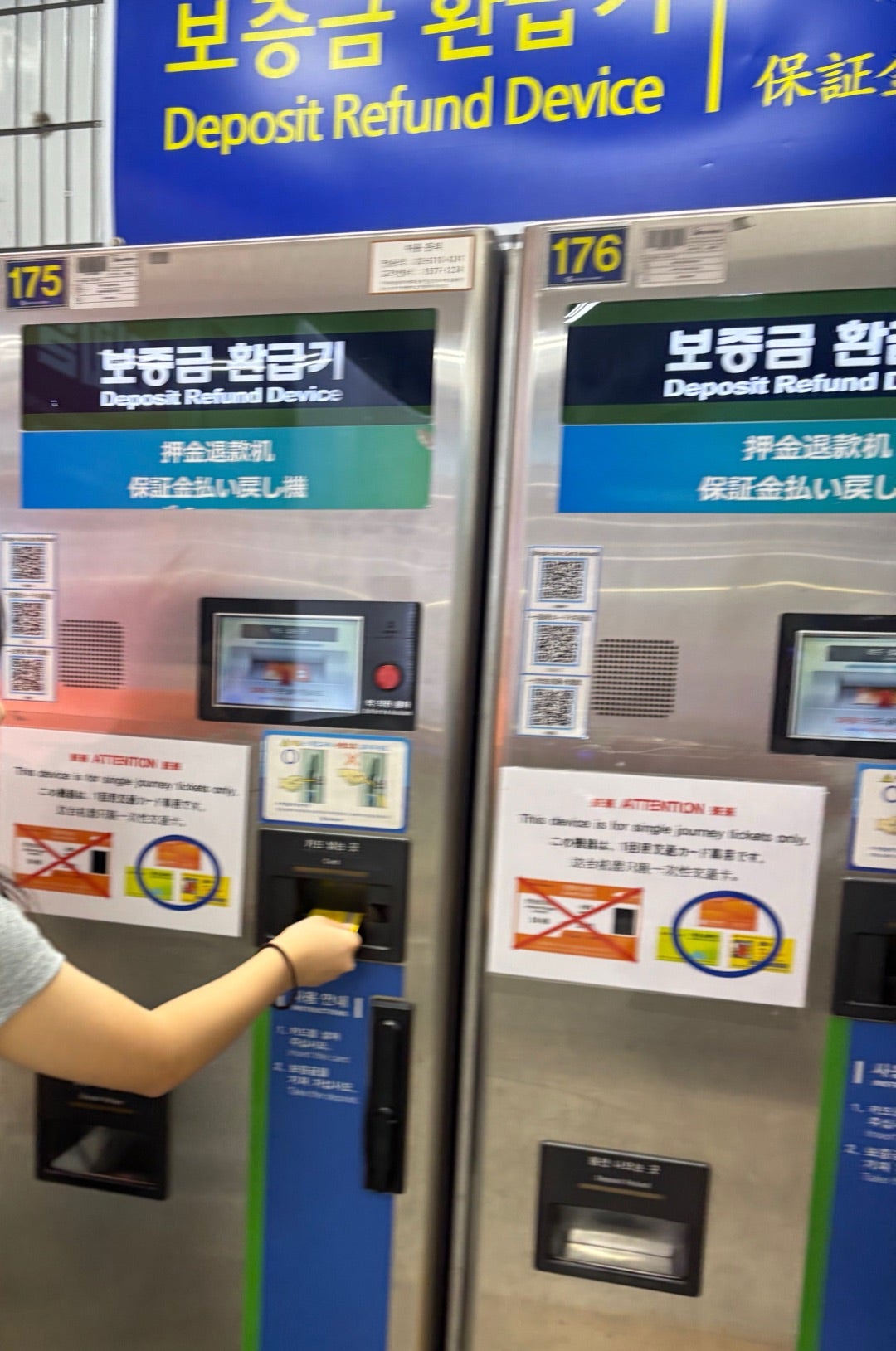 その後地下鉄に乗り明洞駅に戻りました。ちなみにこれがデポジットの払い戻し機です。