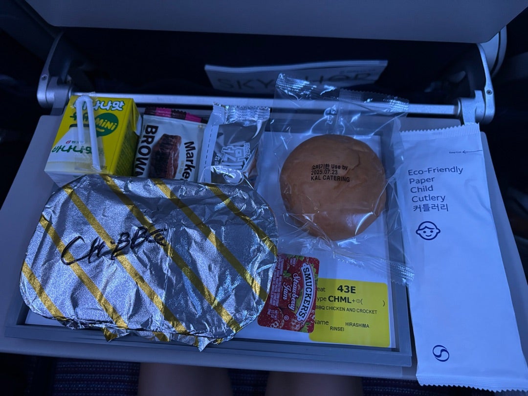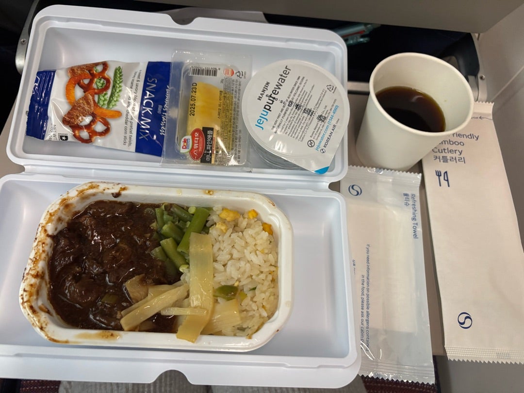さてすぐに搭乗の時間。帰りは大韓航空なので機内食が出ます![]()