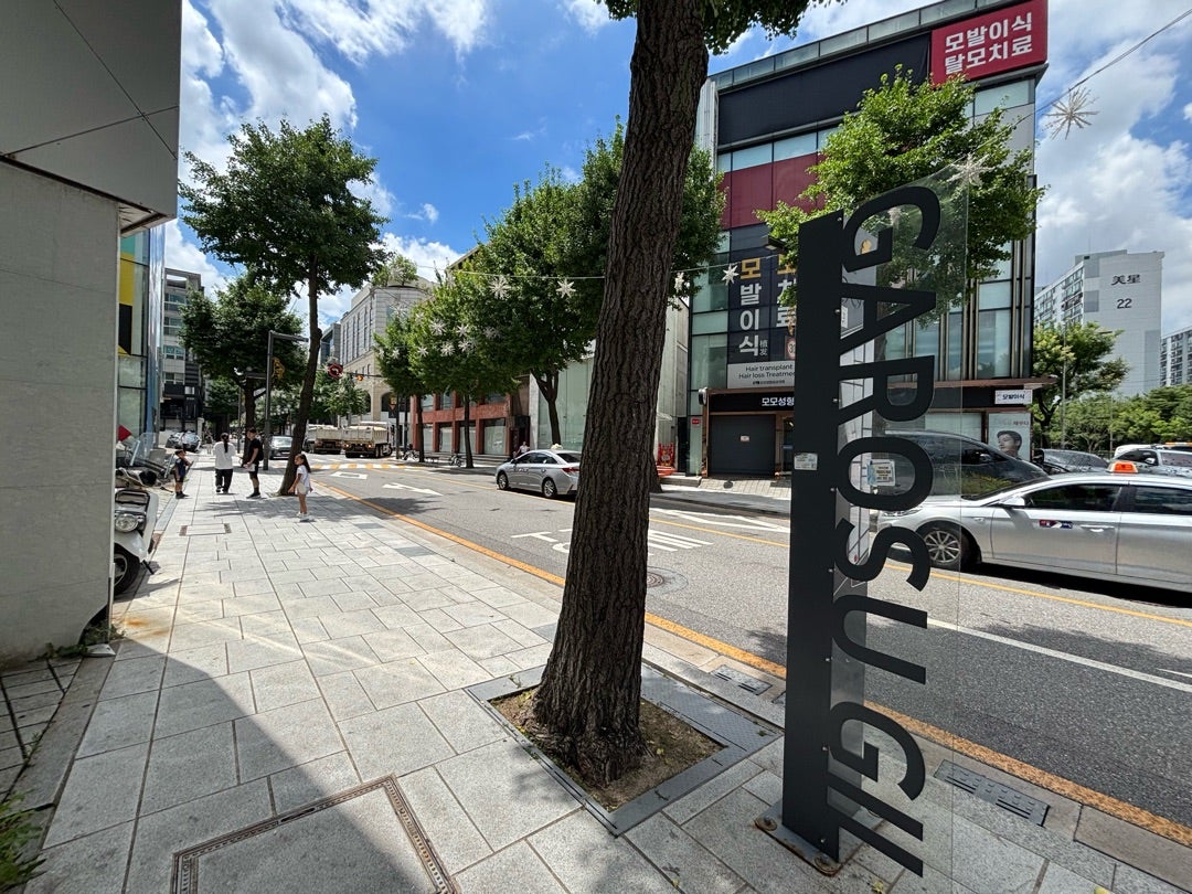 今日は狎鴎亭やカロスキルを巡る予定。地下鉄に乗って狎鴎亭駅へ。この駅を出ると現代百貨店の地下入り口に直結。いきなり高級そうなエントランスです![]()
