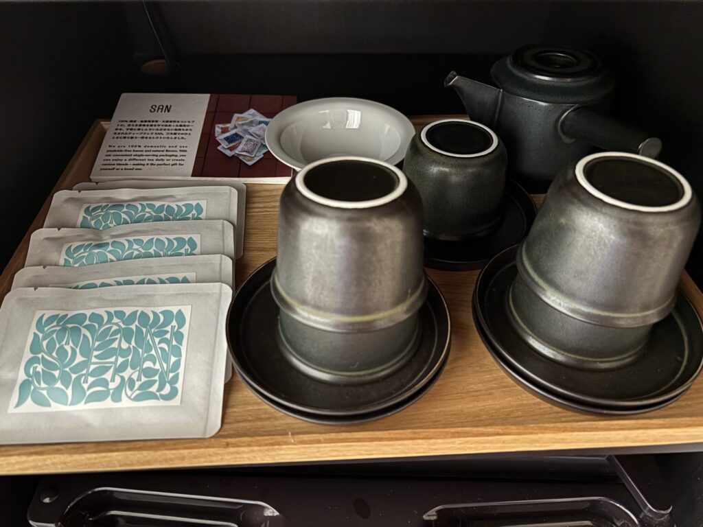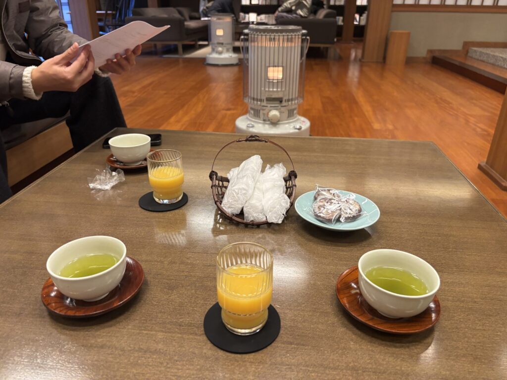 チェックイン時にお茶とお菓子を出してくださいます。