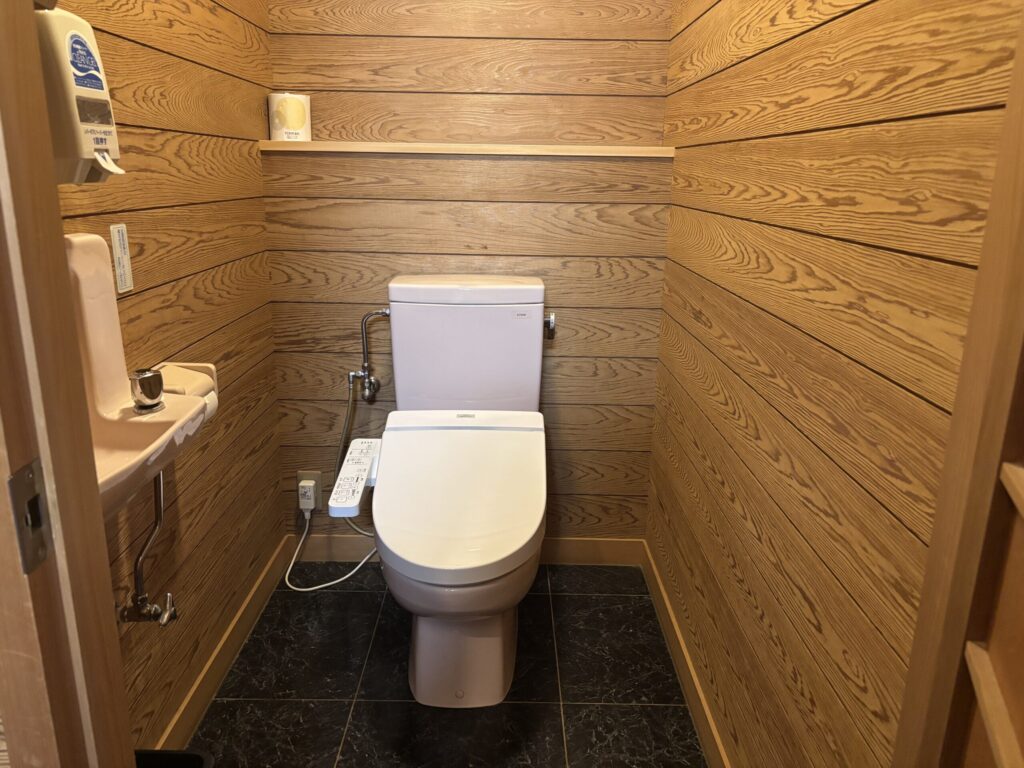 お風呂は、5人で入るのに程よい大きさで、洗い場も2つあり、これも新しめでした。この旅館は建物自体は古いですがお風呂やトイレなど水回りは綺麗に改装されているみたいです✨
