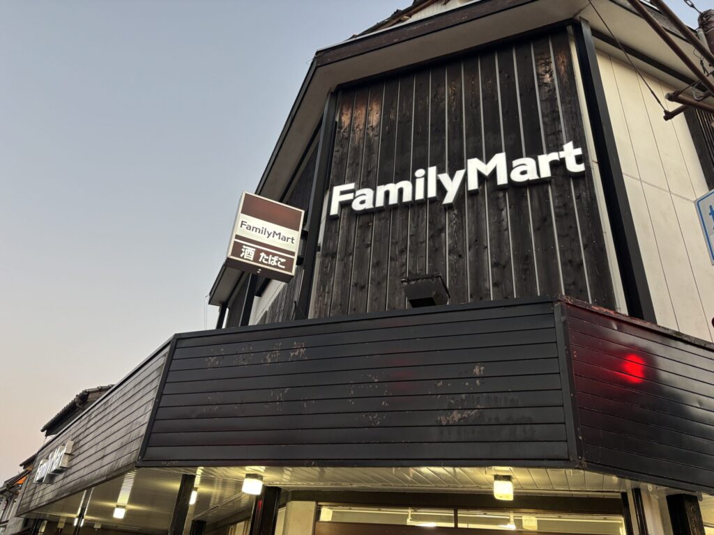 駅へ向かう大きな交差点にFamily Martが。これは便利〜!ちゃんと外観が和風です✨入ってみます。