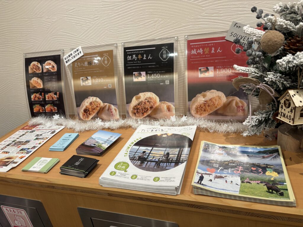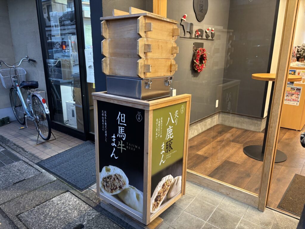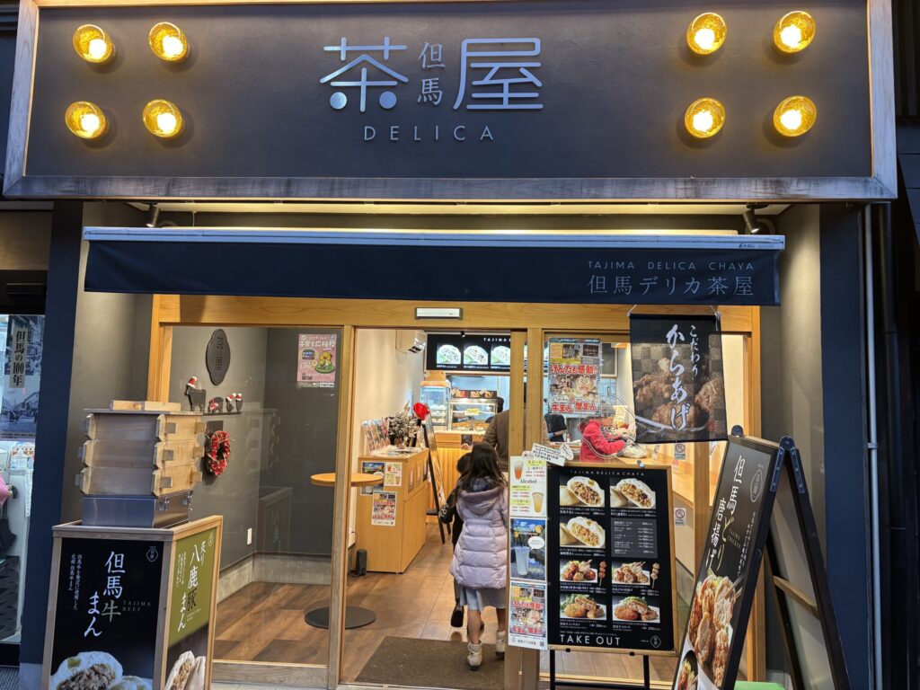 さらに駅方面へ歩き、「但馬デリカ茶屋」で但馬牛まんを買いました。この時すごく寒かったので、熱い牛まんが沁みました♨️