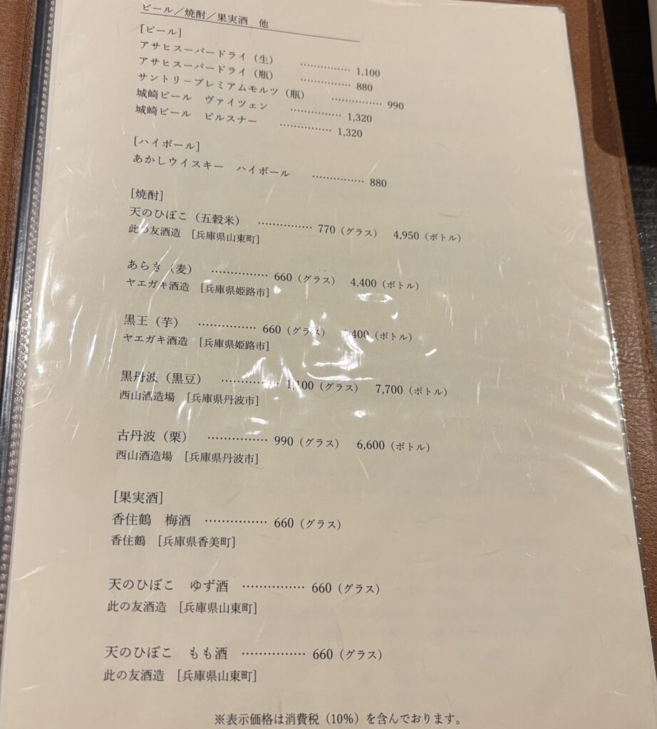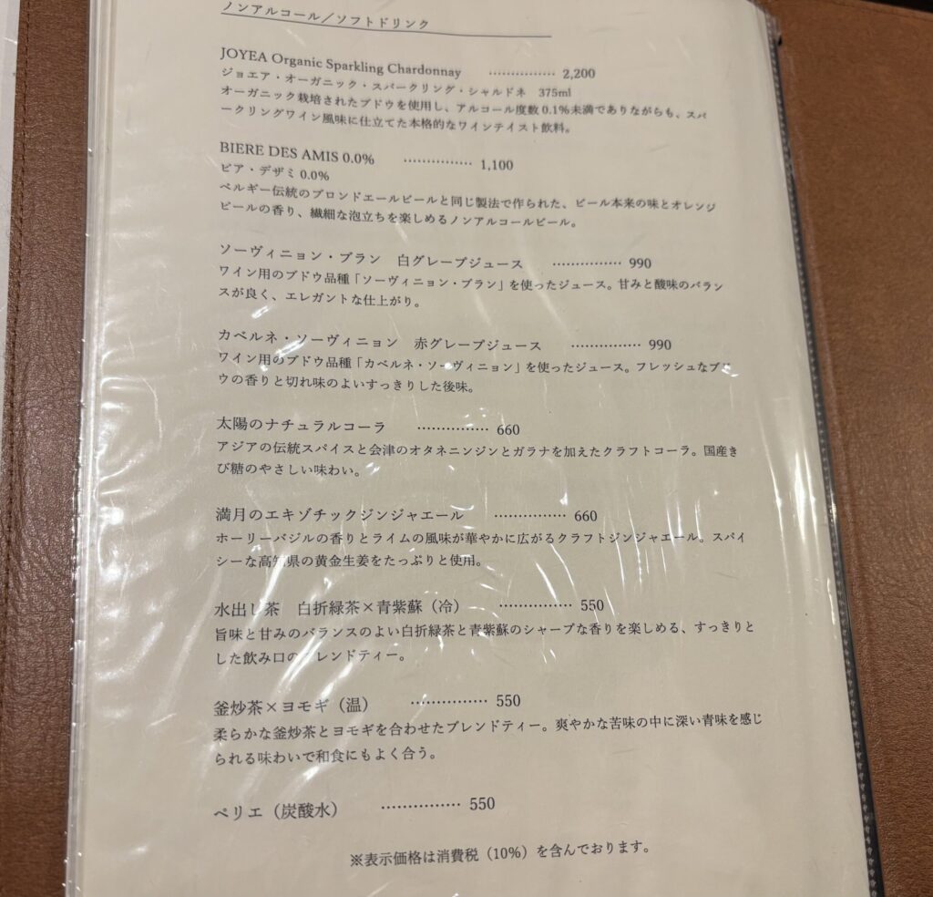 全てテーブル席の半個室仕様でした。宿泊プランは予約時に食事内容込みで決まっているので、ここではドリンクだけオーダーします。