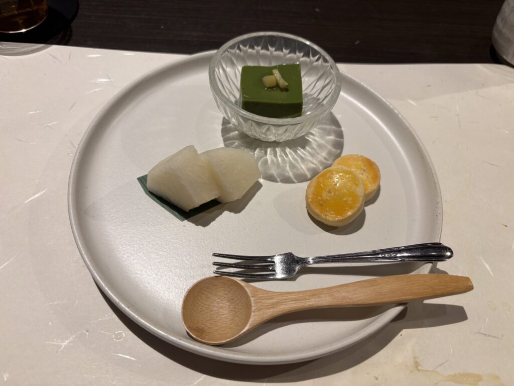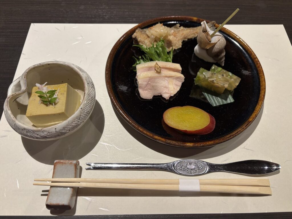 そして大人のメニュー。まず先付けと前菜。