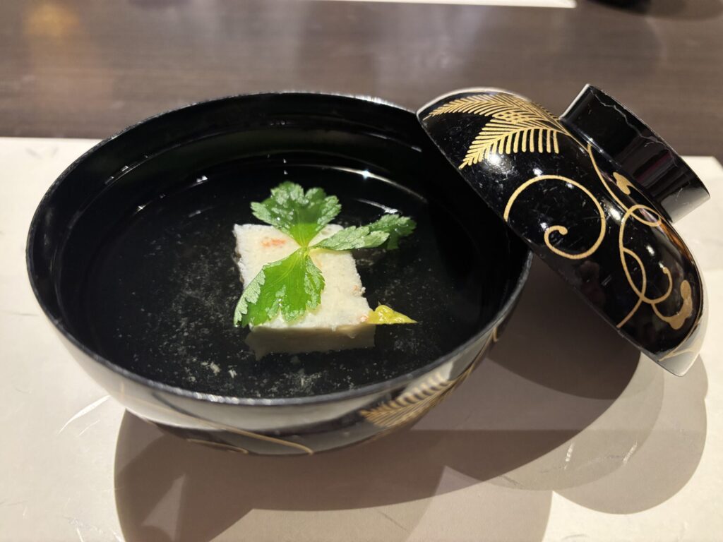 次にお椀。かにしんじょうのお吸い物です。