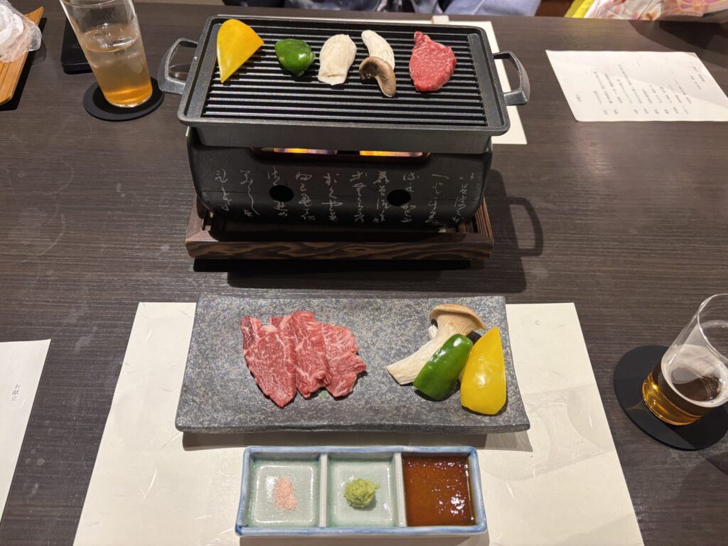 その間に但馬牛陶板焼きが来ました。このお肉、赤身(←我が家は赤身好きです)ながらとろける柔らかさで、すごく美味しかったです!